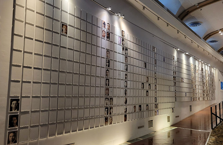 民衆が求める政治改革を表向きは約束した行政長官が、裏では軍隊を派遣した蒋介石の命令に従って弾圧・粛清に走ったことを明らかにする公文書や写真が紀念館には展示されています。その犠牲者は数万人とされますが、正確な数はわかっていません。胸に迫ったのは死者たちのプレートの多くに顔写真はなく、白い壁が広がっていることでした。公務員や教員など当時のエリート層の多くが無差別に虐殺されました。日本の帝大出身者も多く殺害されました。