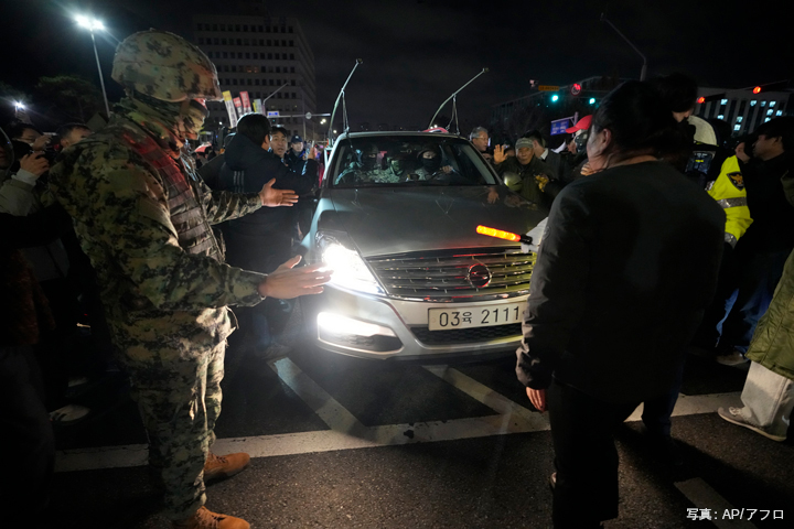 2024年12月3日、ソウルの国会前で軍用車両を取り囲む市民