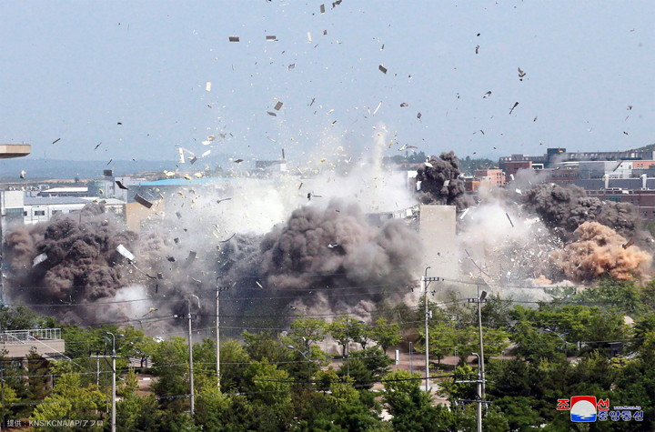 爆破された開城工業団地(開城公団)南北共同連絡事務所(2020年6月16日)