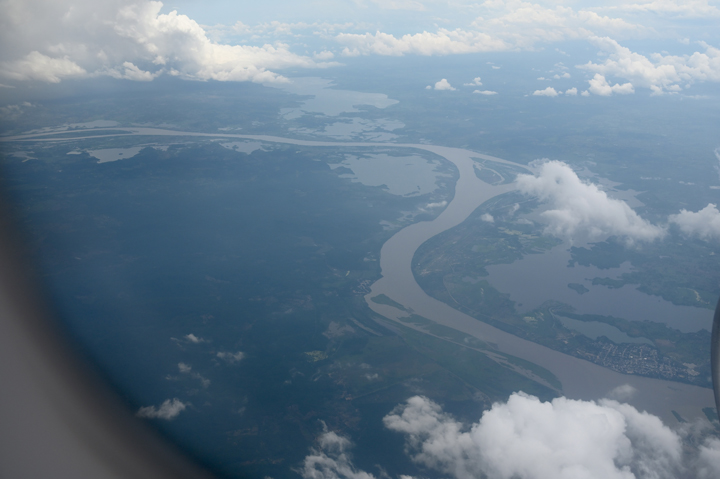 マグダレナ川は湿地帯を蛇行して流れる(手前が上流)撮影:篠田有史