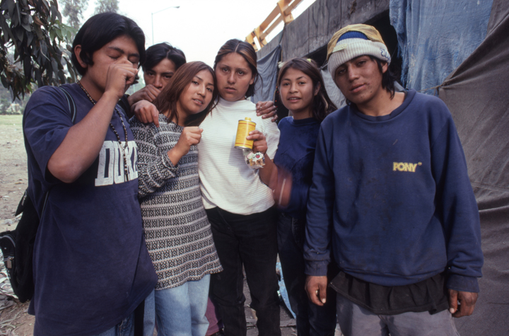 1990年に取材を始めた頃の路上では、出会う子どもたちのおそらく2割程度しか、何らかの薬物を使っている者はいなかった。大抵は、靴底を貼るのに使われる黄色い接着剤をビニール袋に入れて吸っていた。1998年にフィリピンの首都マニラの路上にいる子どもたちの取材を始めた時、その一部が同じことをしているのを見て、驚いた。それが最も安上がりに、空腹や嫌なことを忘れていい気分になれる方法だったからだろう。メキシコの場合だと、たまにマリファナが加わった。