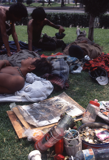 路上の子どもたちのねぐらにも、サンタ・ムエルテの祭壇が作られていた 撮影:篠田有史