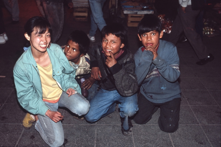 1990年、私(左端)は初めてメキシコシティの路上に暮らす子どもたちと出会った。予想に反し、彼らは人懐っこく、見知らぬ外国人である私たちとの会話を楽しんでいるようだった。写真:篠田有史