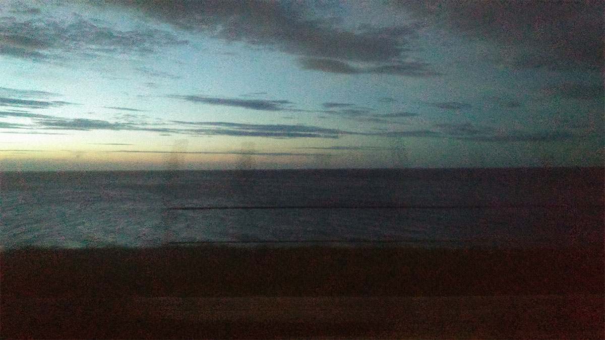 せっかくなら斜里で飲んでいくかと店を探す。良さそうな店が何軒かある。一番古そうな店へ。大量に出てきた鮭とばを噛み、しゃぶりながらビールを飲む。もう斜里に泊まってもいいか。半ばやけくそな気持ちで店を出て、夕暮れの街を歩く。もうどっちでもいいよ。列車がなくてもあっても。駅へ戻り駅員さんに聞くと、無事列車は来るとのこと。ちょっと安心、ちょっと残念な気持ちでホームに行く。夕陽がど真ん中に顔面を射抜いてくる。小さな人間の小さな旅を、鉄道がダイナミックにしてくれる。夕闇の海沿いを、列車は走って網走へ向かった。