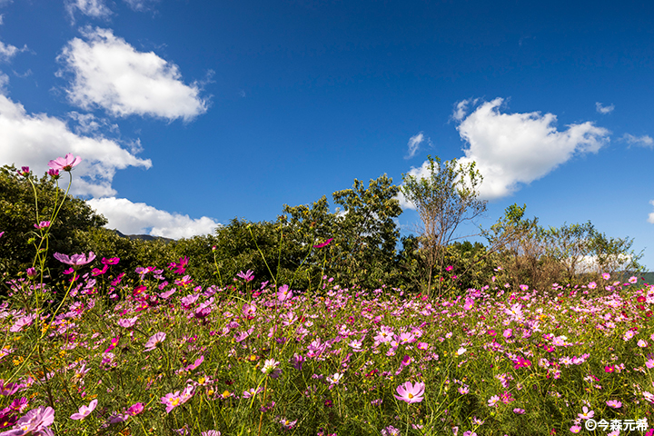 晴れた日のコスモス畑は秋そのもの。(撮影:今森元希)