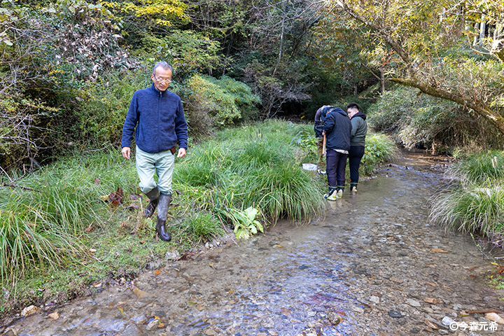 天神川の上流は、浅瀬が多く歩きやすい。(撮影:今森元希)