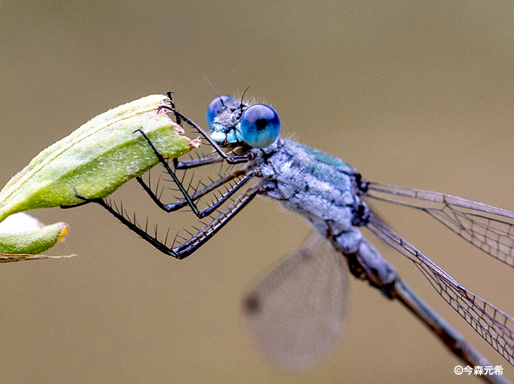 アオイトトンボの複眼は、青くて美しい。(撮影:今森元希)