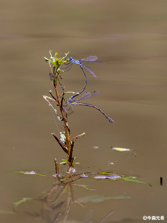 湿地で交尾するアオイトトンボ。(撮影:今森元希)