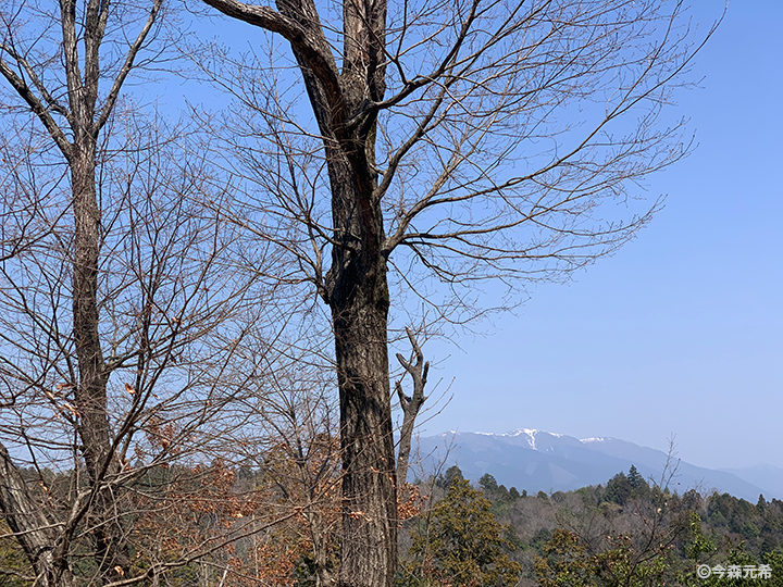 「めいすいの里山」から眺める冬の風景はとてもきれいです。ビューポイントは2つあって、1つは仰木(おおぎ)の棚田と琵琶湖が臨める場所。もう1つは、落葉したコナラ越しに比良山地(ひらさんち)が見える小山のピークです。晴れていたら、どちらも見たくなるので息を切らしながら山道を登ることになります。