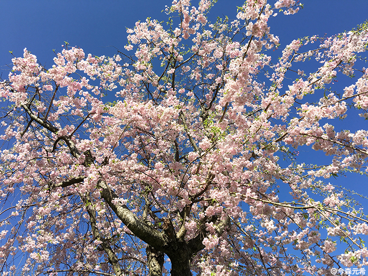 オーレリアンの丘にある枝垂れ桜。敷地内には、樹齢150年を超えるヤマザクラもある。(撮影:今森元希)