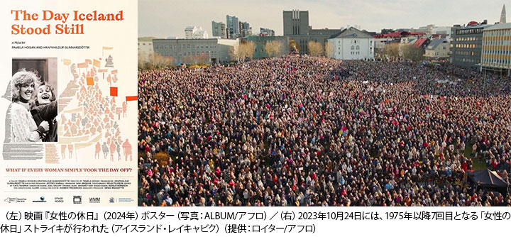 2025年に日本で公開された映画『女性の休日』(パメラ・ホーガン監督、2024年、アイスランド/アメリカ)は、1975年、アイスランドの女性たちが仕事や家事・育児を一斉に休み、ケアの負担の大きさやそれを誰が担っているのかということを突きつけ、社会を変えたアクションを掘り起こしたドキュメンタリーです。このアクションが大きなきっかけとなり、アイスランドは世界でも有数のジェンダー平等が進んだ国となり、世界経済フォーラム(WEF)の「ジェンダー・ギャップ指数」では2009年から16年連続で世界第1位を獲得しています。それでも、男女間の賃金格差や女性への暴力はなくなっていないとして、現在でも「女性の休日」のアクションが続けられ、2025年には首都レイキャビクに約5万人が集まったそうです。
